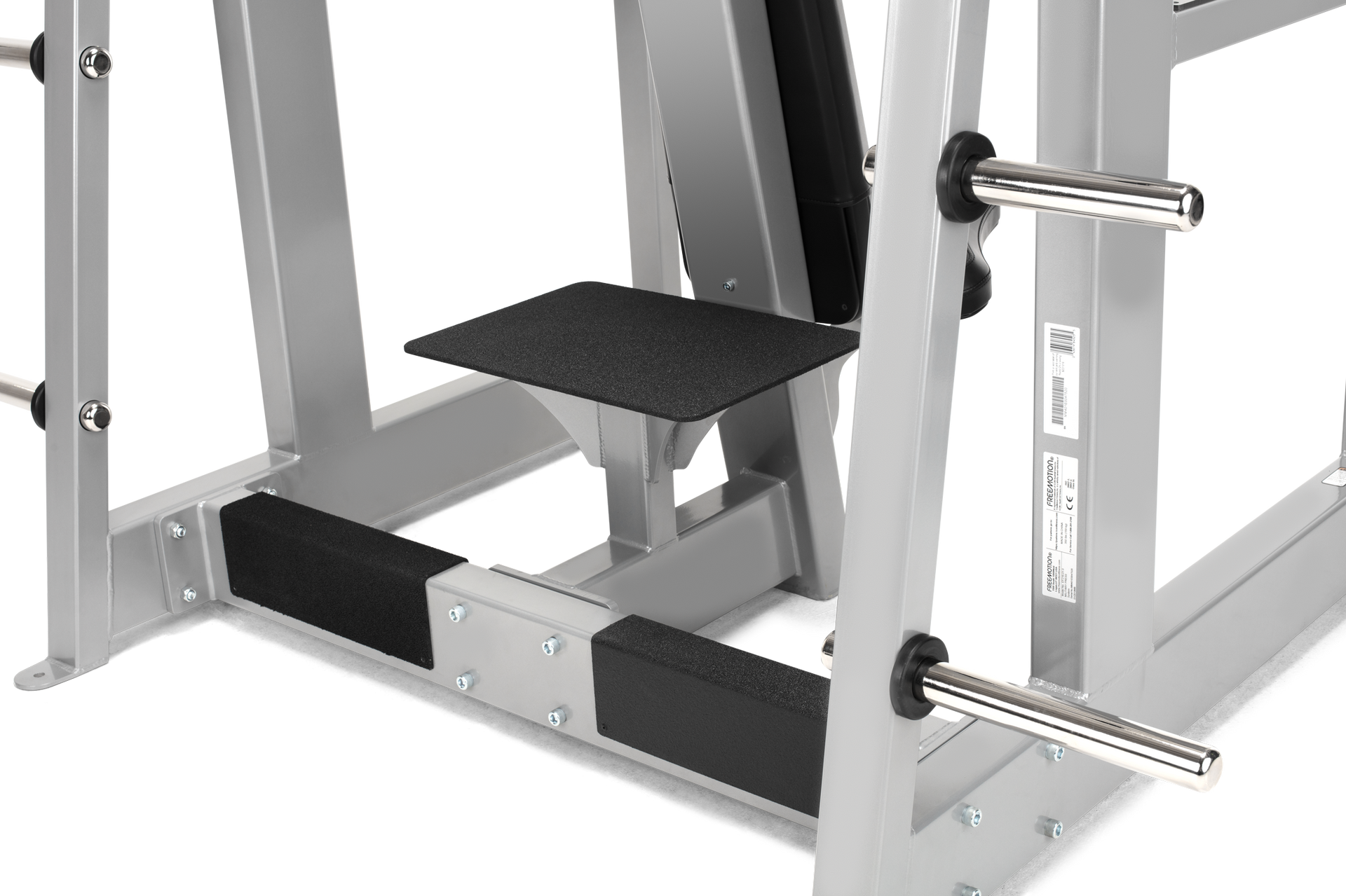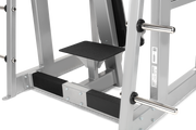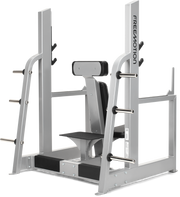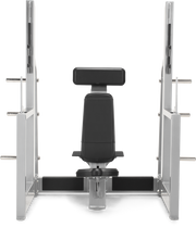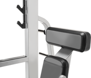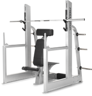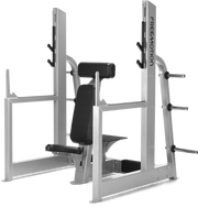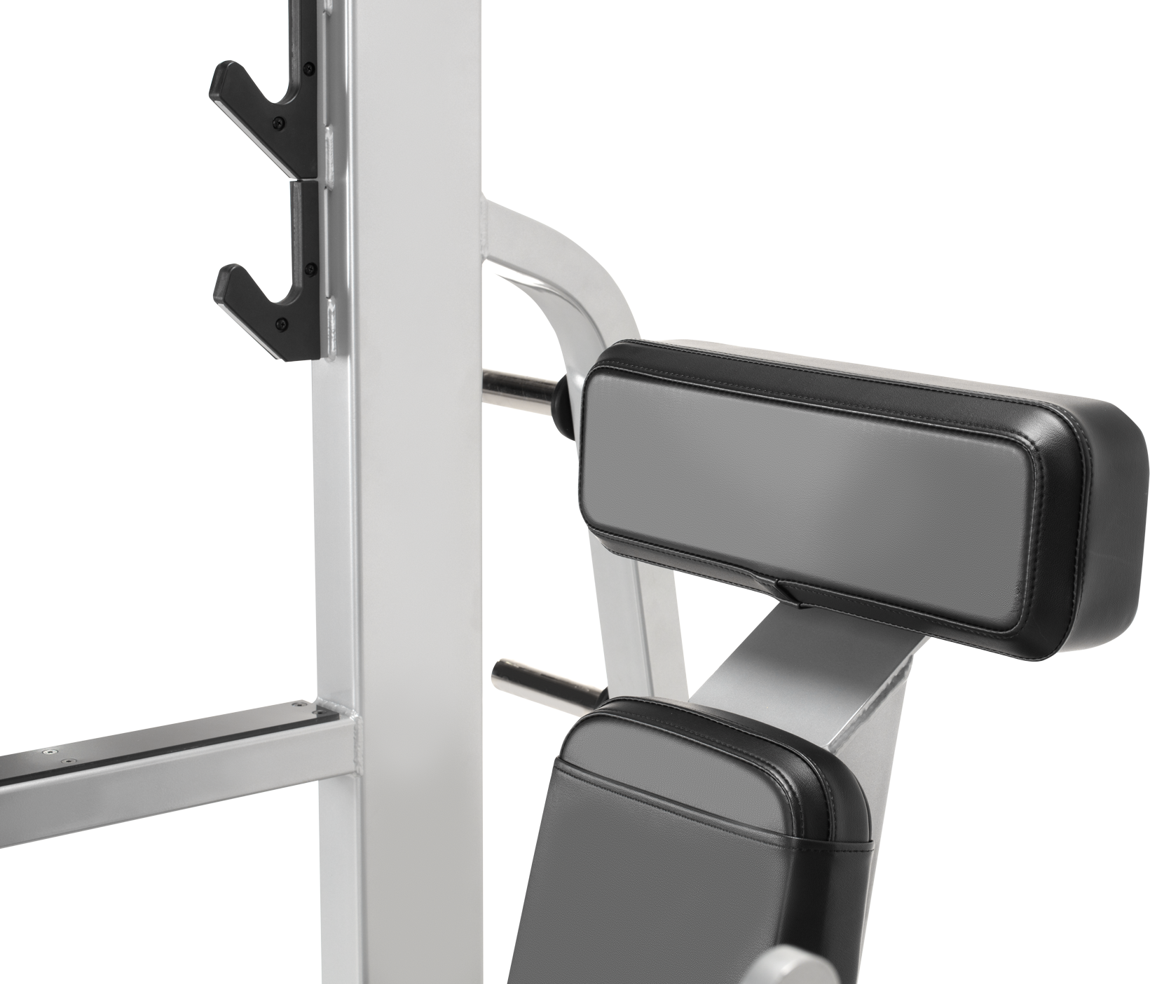 The open design, convenient catch ramp and spotter stand are just three reasons why a EPIC Military Press can add functionality to your gym. The 1.5 in (3.8 cm) foam seat covered with wear-resistant vinyl can be adjusted to fit people of all sizes. Convenient catch bars are protected with a polyurethane coating to quiet noise and protect the press. Stainless steel kick plates, plate load design, multiple bar racks and bolt-down holes all add to the versatility of this one machine. Heavy-duty steel construction and an electrostatically powder-coating gives it superior polish and amazing durability.