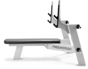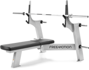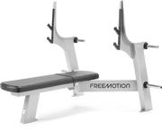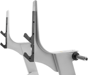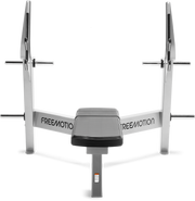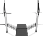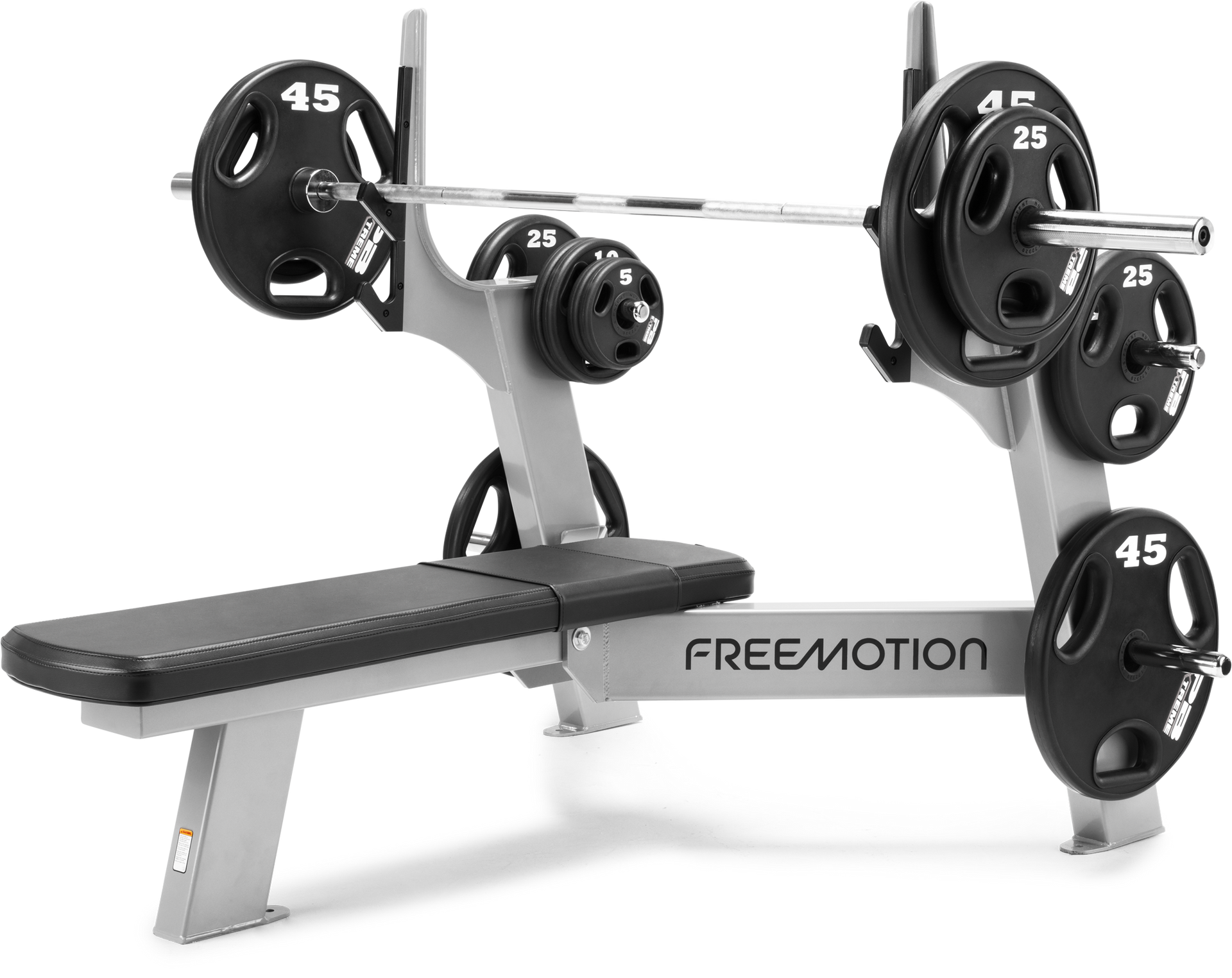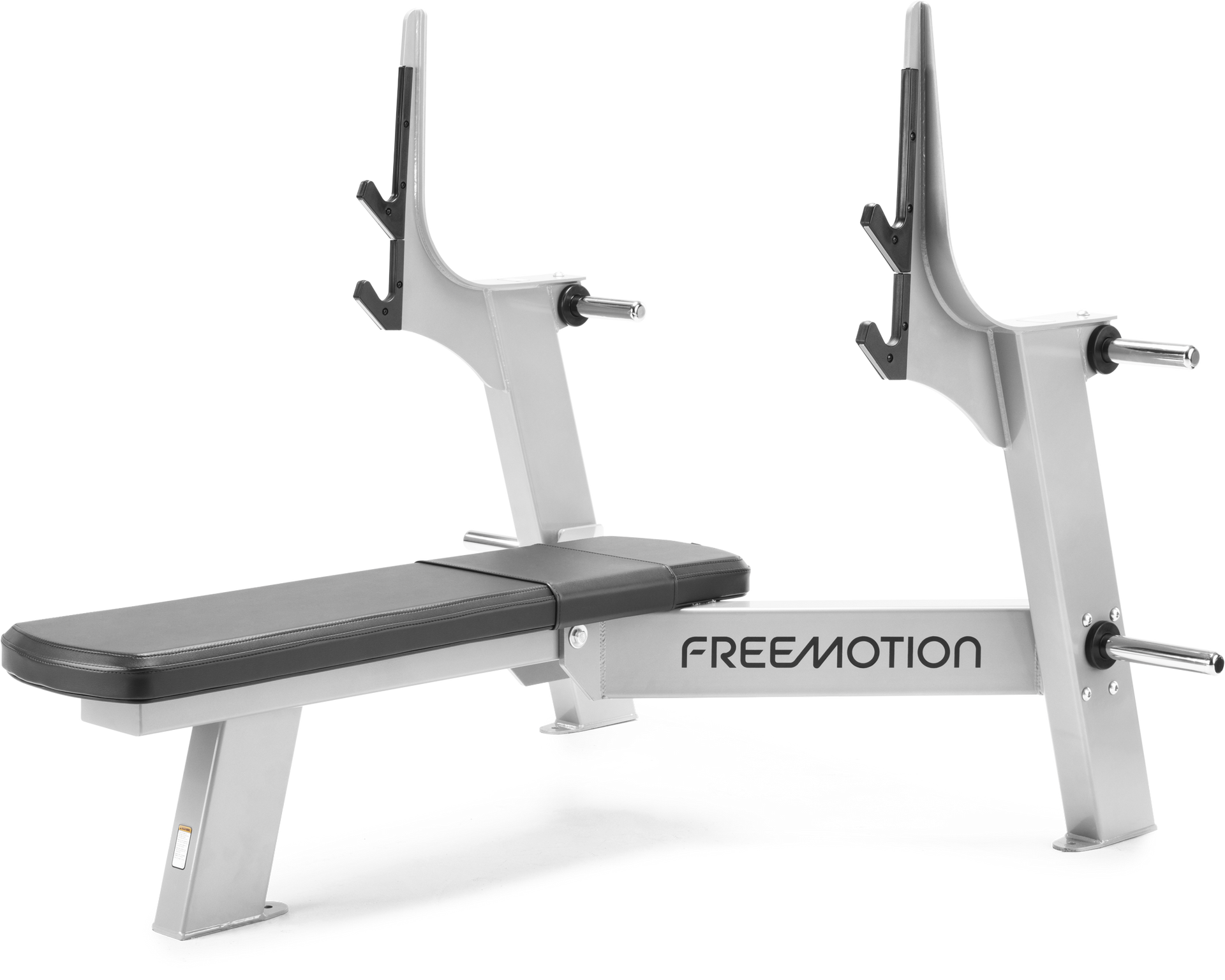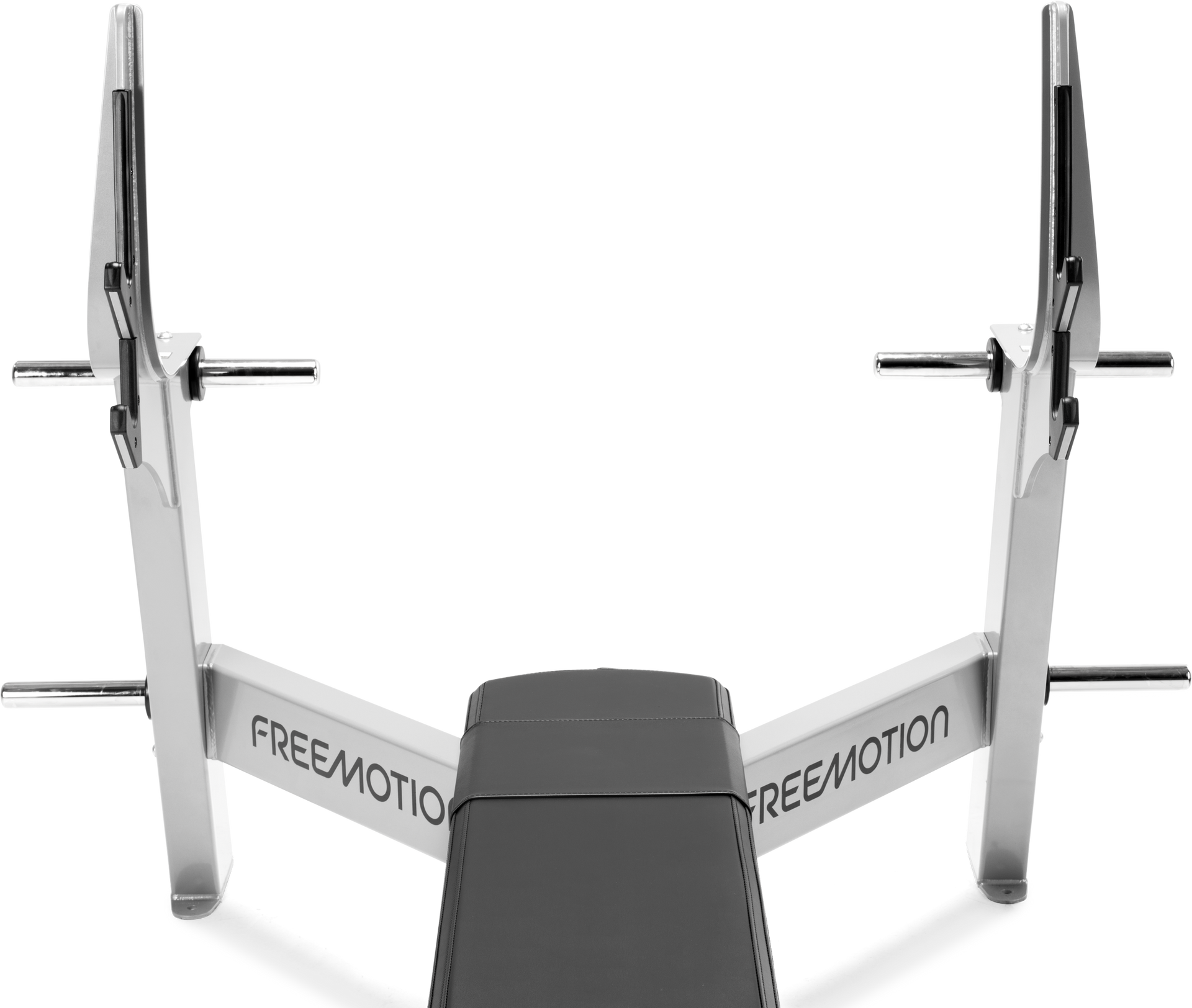 The unique Y-shaped frame of the EPIC Olympic Flat Bench gets the spotter closer to the lifter. Six plate holders positioned near the bar make loading and unloading weight easier and more efficient. For maximum bar clearance, the wide, Olympic bench was designed with two rack heights and molded covers for added durability. The extended bar racks create wider than usual hand positions while the high-quality vinyl, 1.5 in (3.8 cm) foam padded seat and bolt-down holes keep the machine comfortable and safely secured to the floor. Bar sold separately.