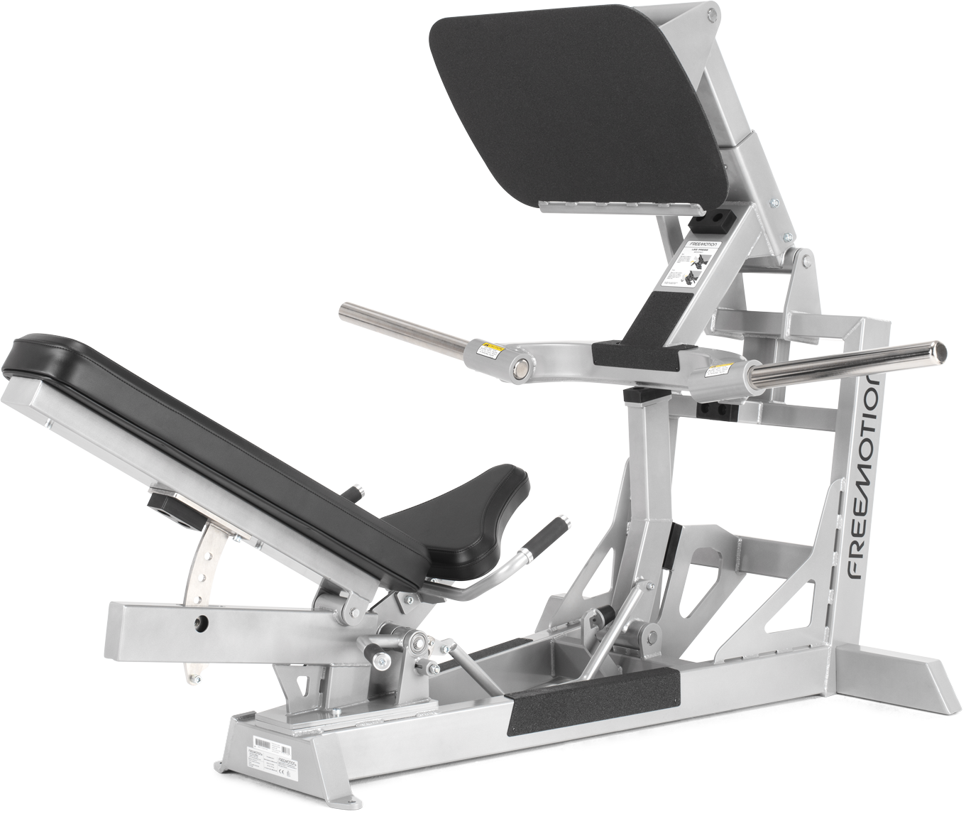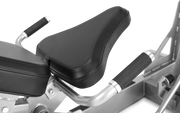This heavy-duty piece of equipment has a starting resistance of 90 lbs (40.8 kg) and a maximum load weight of 900 lbs (408 kg). The four-bar linkage on the EPIC Plate Loaded Leg Press allows the lower body to move in a more natural pattern and helps reduce stress on the knees. Tough grip Line-X® coating ensures stable foot placement while a sophisticated weight-locking lever ensures safe and easy use. Each load bar is positioned for easy entry and exit and pre-drilled holes can be bolted to the floor for added stability.