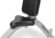 This short back, military bench makes it easy to do overhead presses - without the bench itself getting in the way. Built for comfort, safety and durability, the EPIC Seated Bench has wear-resistant vinyl and high-density foam on the seat and contoured backrest. Vinyl stretched and sewn makes a stronger, more durable seat combined with 11-gauge steel that's been electrostatically powder-coated for a sleek finish. Convenient 3-inch transport wheels make it mobile and the easy answer to creating a circuit cycle with any Freemotion machine. The easy-grip handle and bolt-down holes make this bench a catalyst for getting stronger.