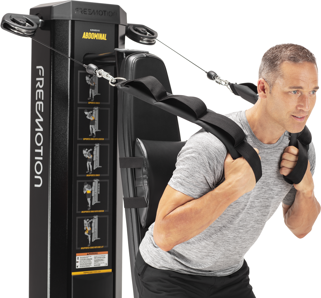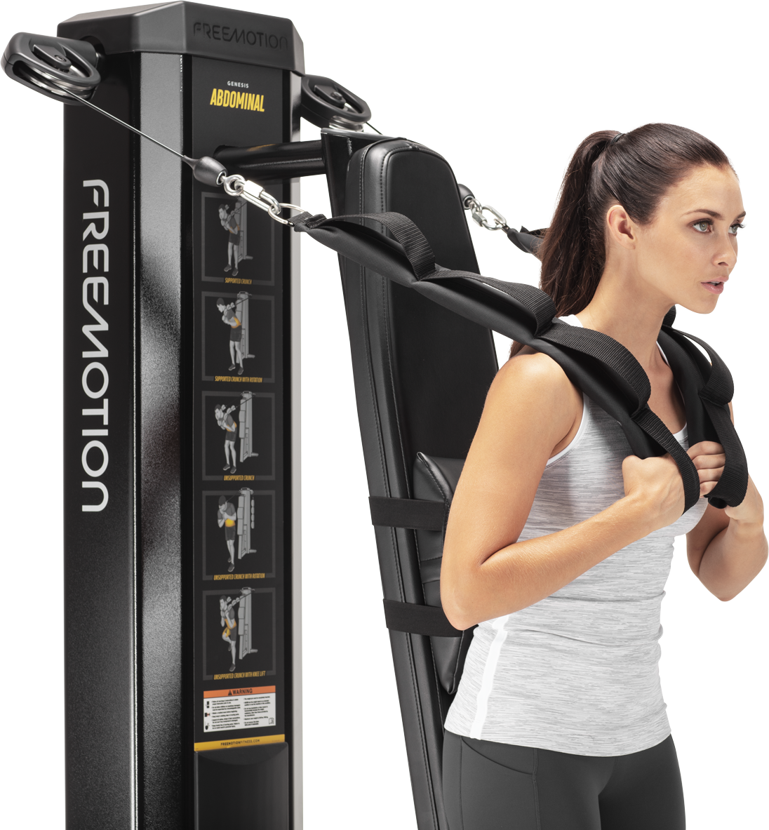 Ein stehendes Bauchmuskeltrainingsgerät hat einen großen Vorteil: Mitglieder können ihre Rumpfkraft und ihr Gleichgewicht trainieren und dabei sechs verschiedene Bauchmuskeln gezielt beanspruchen. Das Genesis verfügt über ein einfaches, verstellbares Polster für den unteren Rücken, während mehrstufige Gurte eine vom Benutzer festgelegte Spannung erzeugen. Weniger Einstellmöglichkeiten bedeuten mehr workout und durch Hinzufügen einer Drehung oder Seitbeuge können die oberen, unteren und seitlichen Muskeln für ein umfassendes, individuelles workout beansprucht werden.