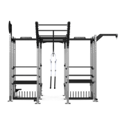 Schaffen Sie sich mit dem Freemotion FitRig ft / 3,6 m Premium 3.0 Rig den ultimativen Fitness-Spielplatz. Fügen Sie eine Reihe von Anbauteilen und Zubehör wie J-Haken und Sicherheitsverschlüsse zum Heben sowie Stifte zur Aufbewahrung von Gewichtsplatten hinzu. Mit Dip-Stangen, Plyo-Steps usw. können Sie ein umfassendes workout gestalten. Mit Ablagefächern bleibt der Raum frei von Unordnung.